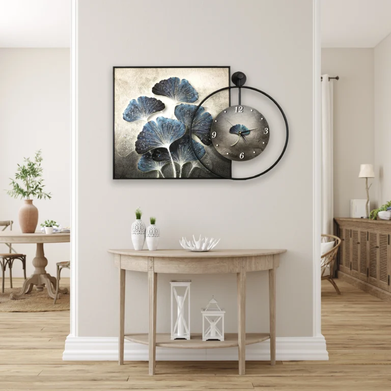 Elegant Botanical Wall Clock with Diamond Inlay and LED Accents