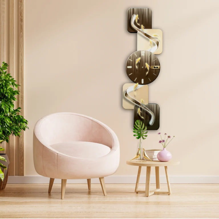 Vertical LED Wall Clock with Golden Fish Design & Diamond-Inlaid Porcelain