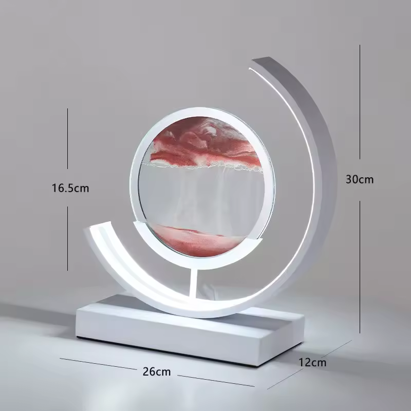 Immerse yourself in the tranquil beauty of ever-shifting sands with the Celestial Flow LED Sandscape Lamp. This captivating piece combines kinetic art with ambient lighting to create a visual experience that’s both mesmerizing and meditative. Each gentle rotation of the glass disc sets a new landscape in motion—mountains rise, dunes fall, and ethereal valleys form before your eyes. Framed in a sleek crescent-shaped LED structure, this lamp is more than lighting; it’s a sculpture in motion, ideal for modern interiors, contemplative spaces, or as a unique gift for art lovers and creatives.