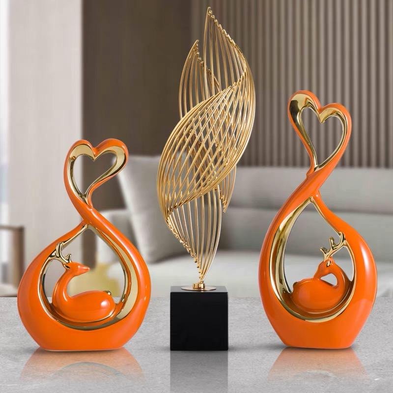 Grace your home with a masterful blend of elegance, modernity, and emotional warmth with the Golden Harmony Deer & Spiral Trio Sculpture Set – Dual Color Edition. This curated trio features two stylized deer sculptures framed in elegant infinity-heart designs, paired with a striking abstract spiral centerpiece in gold metal. Available in two refined finishes—classic white-gold for serene minimalism and bold orange-gold for a vibrant, contemporary look—this set makes an artistic statement in any room.