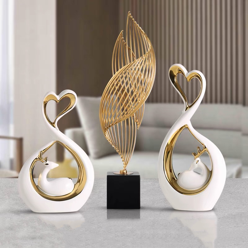 Each deer symbolizes calmness, connection, and love, making them perfect for couples or for setting a peaceful ambiance. The dynamic golden spiral, seated on a bold black base, radiates sophistication and movement. Whether you’re decorating a modern living room, a cozy bedroom, or a luxe office space, this set adds both meaning and beauty.