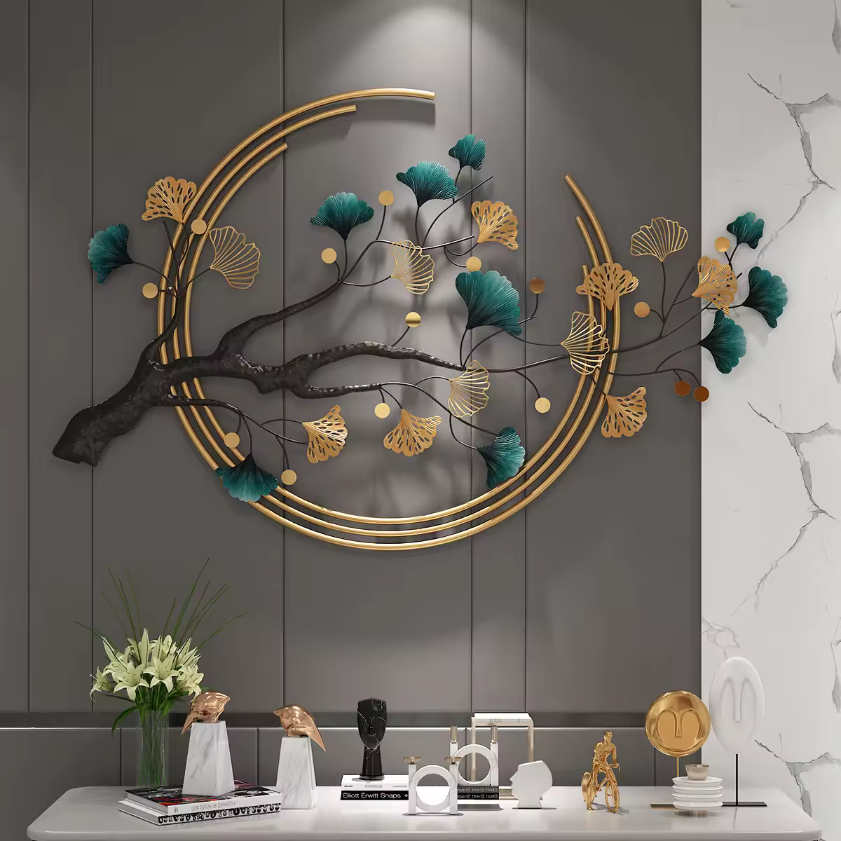 Transform your space into a haven of elegance and tranquility with the Golden Whisper Ginkgo Wall Sculpture. Inspired by the timeless grace of ginkgo leaves and the fluid strength of nature, this exquisite metal wall art fuses Eastern serenity with modern sophistication. Each handcrafted detail—from the sweeping golden arcs to the intricate fan-shaped leaves in rich teal and gold tones—creates a harmonious balance of strength, beauty, and movement. This statement piece evokes a sense of calm luxury, perfect for those who appreciate refined artistry and want their walls to speak volumes without words.