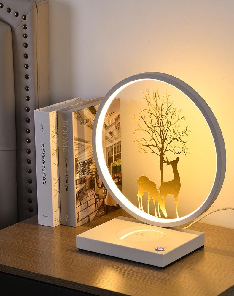 Bring a touch of tranquil nature into your home with the Luminar Deer Serenity LED Table Lamp — a poetic fusion of ambient light and artistic elegance. Encased in a perfect circular frame, two delicate deer stand under a finely detailed tree, bathed in the gentle glow of warm LED light. This sculptural piece evokes peace and reflection, making it the perfect accent for your bedroom, reading corner, or meditation space.