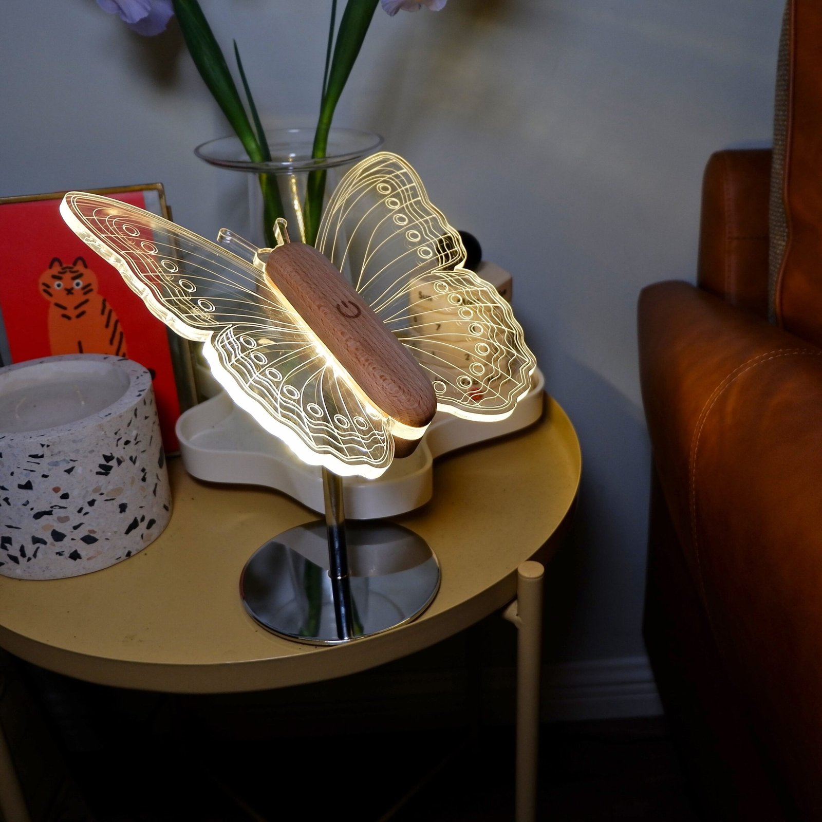 Let your space glow with the delicate elegance of the LumiWings Butterfly Night Lamp — a poetic blend of nature and modern design. This enchanting lamp features a 3D acrylic butterfly perched gracefully atop a wooden and chrome stand, creating the illusion of a glowing creature mid-flight. Soft LED lighting diffuses gently through the intricately etched wings, casting dreamlike patterns across your walls. Ideal for nightstands, reading corners, or creative workspaces, LumiWings is more than a lamp — it’s a luminous sculpture that transforms ambiance into art. A perfect gift for dreamers, romantics, and lovers of thoughtful design.