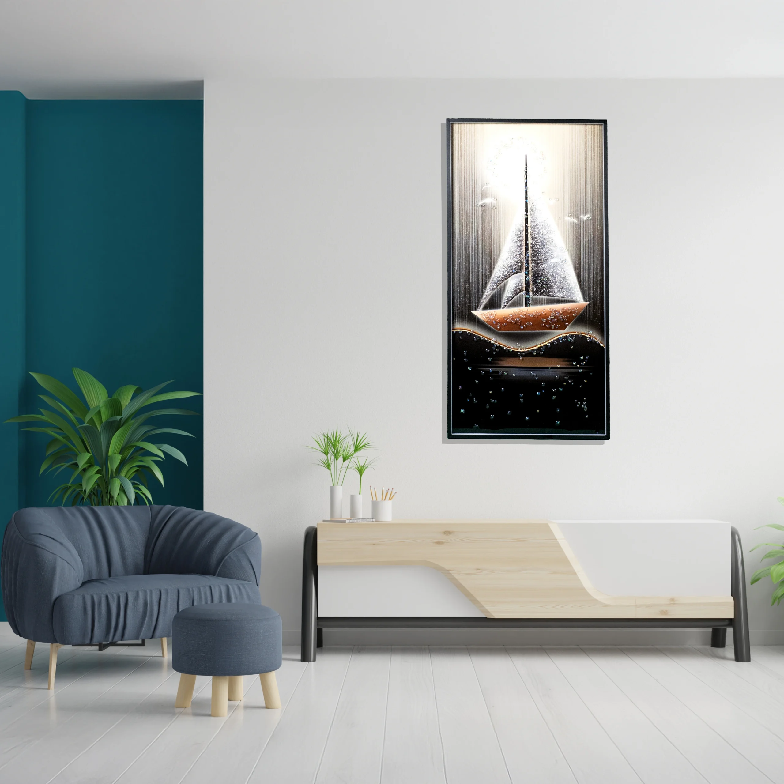 Bring timeless elegance to your interior with this Luxury Abstract Sailboat Wall Art, crafted with a premium finish to transform any space into a statement of sophistication. Designed in a 40 × 80 cm frame and weighing 2.6 kg, this décor piece combines artistic beauty with modern functionality.