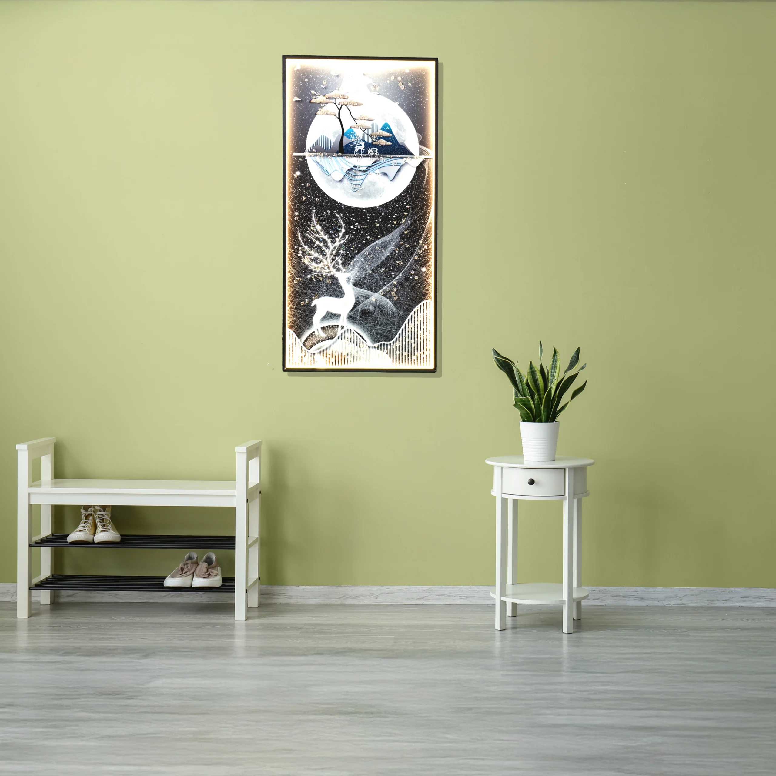 Bring elegance and imagination to your living space with this stunning LED wall art. Featuring a serene moonlit design, floating mountains, and golden accents, this piece creates the perfect balance between modern style and natural inspiration. The built-in LED system with remote control allows you to adjust the lighting for the perfect ambiance. Premium framing, diamond fixtures, and high-quality Archelic craftsmanship ensure durability and luxury in every detail.