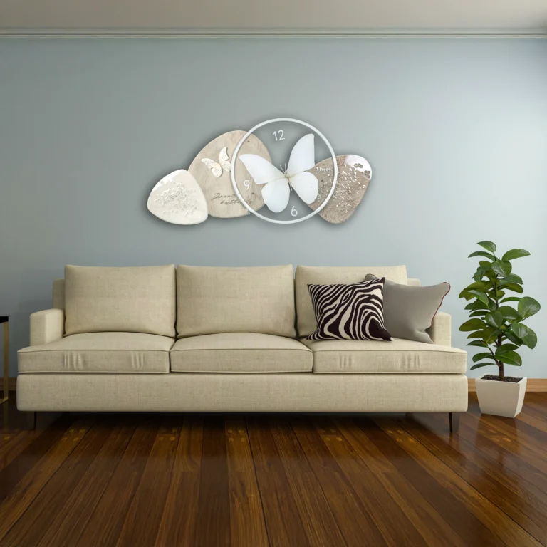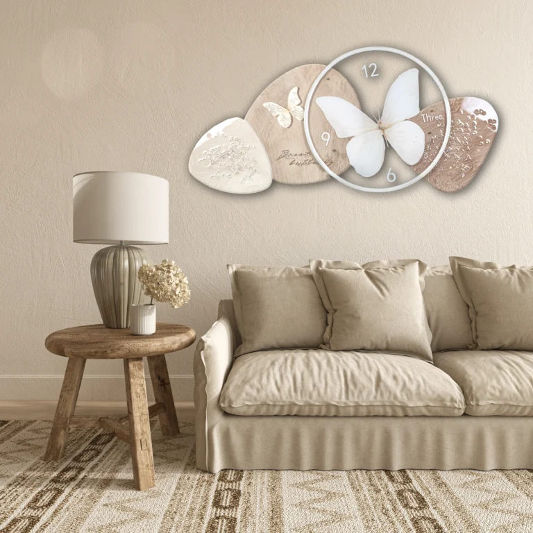 Elegant Butterfly Wall Clock with LED Warm Light & Porcelain Carving